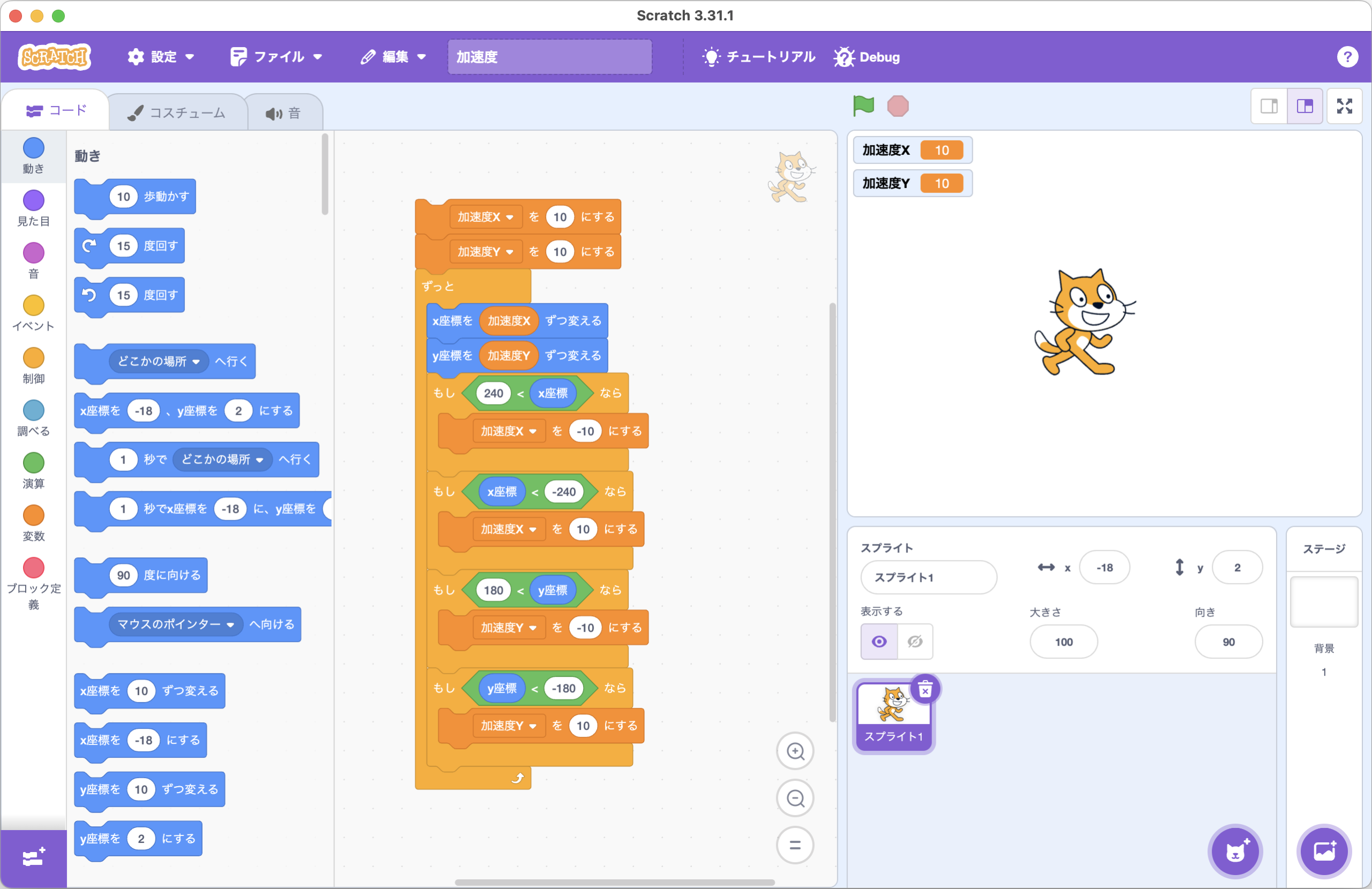 このスクラッチを使って、ゲームやアプリなど、自分の作りたいものを完成させる為に必要な「アルゴリズム」を覚えます。